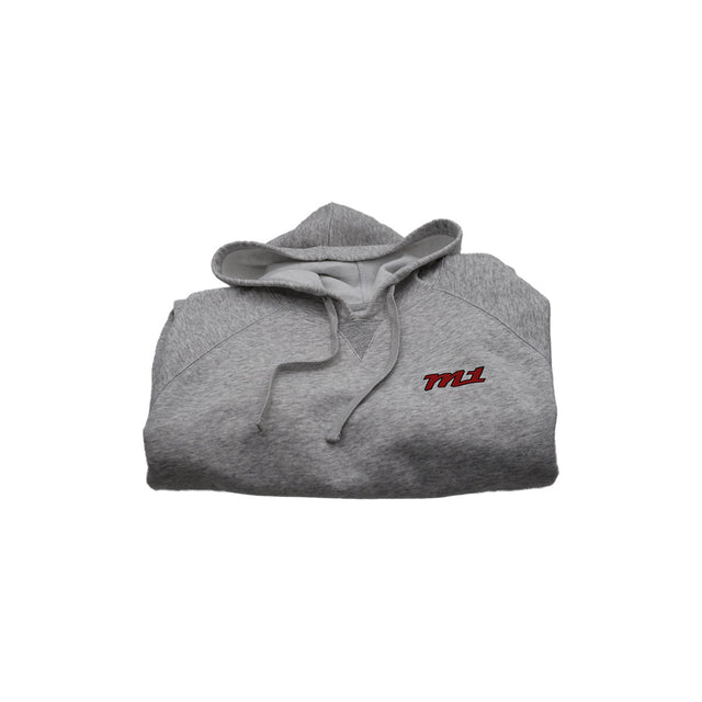 M1 Concourse Gray Hoodie – Red Logo + Sleeve Print